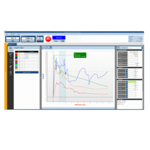 Imada’s graphing software is a powerful tool that helps create graphs in real-time while connected to a force gauge, displaying force versus time or force versus displacement. This allows you to visually inspect load transitions and identify any abnormality in the change in force as well as the maximum value, enabling you to evaluate the testing process more effectively.
